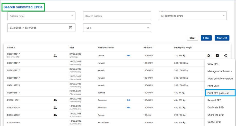 o Το ENS Pass περιλαμβάνεται μαζί με το EPD Pass στη λειτουργία «Εκτύπωση EPD pass – όλα».