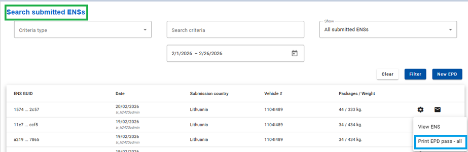 - The ENS Pass is included together with the EPD Pass in the function “Print EPD pass – all”.