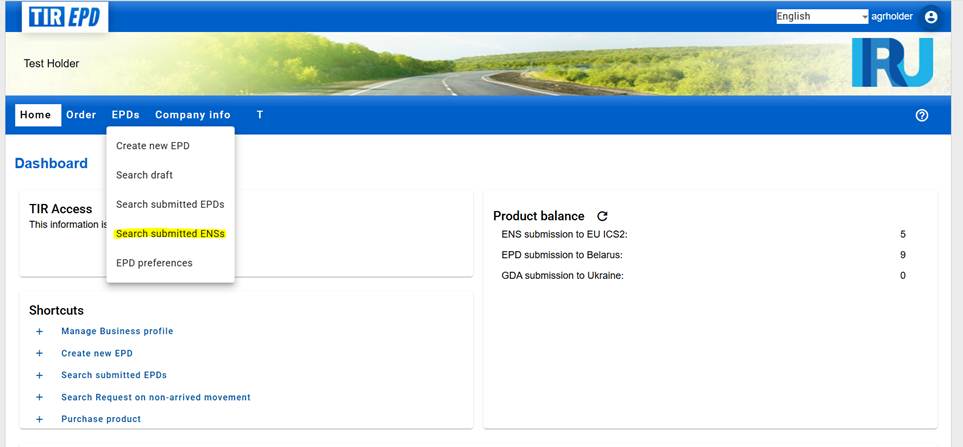 It is now possible to submit ENS declarations to all ICS2 countries independently of EPD connections. This means that TIR holders can file ENS declarations for any ICS2 country through TIR-EPD, notably those where entry into the EU is possible by road or intermodal transport (e.g., Ro-Ro):